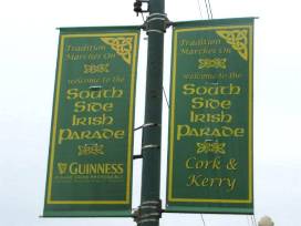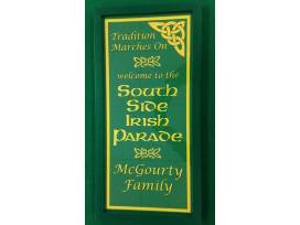 Show off your South Side Irish pride by having a banner with your family or business name hanging along Western Avenue for the entire month of March, decorating the Beverly/Morgan Park neighborhood for the St. Patrick's Day season. Your South Side Irish pride can be displayed in your home with a replica miniature banner and South Side Irish St. Patrick's Day Parade branded glassware.