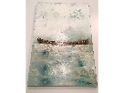 This hand-painted piece by Julie A. Harvey is entitled "Solo." It is a beautiful 36" x 24" painting. Harvey is a local artist who draws her inspiration from anything one might imagine. Her paintings display large-scale abstract works on canvas, incorporating bold, gestural strokes with large brushes and palette knives, balancing light and shadow in a sea of texture and color.
