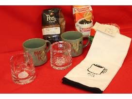 12 cup programmable coffee maker and basket of coffee essentials. Wake up and smell the coffee!