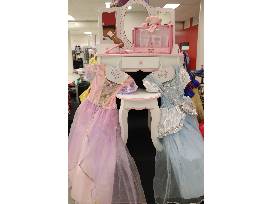 Any little girl can be the princess of her dreams with this vanity and wardrobe of princess dresses.