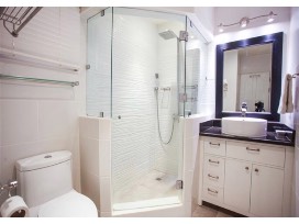 The bedrooms are spacious and contain custom-made bedroom furniture, brand new memory foam mattresses, and custom closets with built-in drawers, shelves, and shoe racks. The master bedroom contains a large floor-to- ceiling picture window, allowing for plenty of natural light and stunning ocean views.