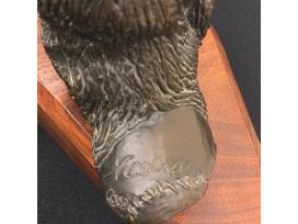 Beautiful bronze sculpture created in memory of Nicolas Parker beloved "Man of the mountains." Nicely mounted on walnut base.
