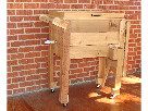This handmade porch cooler is perfect for entertaining! It is made from cedar and features: a hinged drop-leaf on the side for 26" additional workspace, bottle opener, drain, casters and handle for movement.