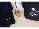 Men's navy Nike golf shirt (L), golf putter and Union County Community Shelter shoe bag.