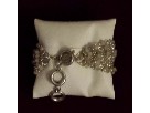 The bracelet is made of silver wire and toggle clasp with pearl white and champagne blush faceted beads.