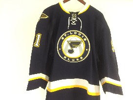 This St. Louis Blues Uniform Jersey could be your last chance to get this type of Jersey. The Blues are no longer wearing this dark Jersey. It is a "Treasure"!