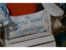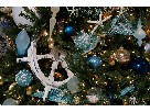 An abundance of lights, enhance a beautiful array of seaside inspired ornaments. Japanese glass floats, Adirondack chairs, cozy pillows, and gifts from the sea lounge in this beach scene. Sea blue, coral pink, and shades of teal, and turquoise blue unite to radiate a peaceful and relaxing seaside holiday.