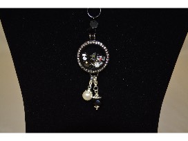 Classic timeless look necklace from Oragami Owl with a black 32" chain. Charms include a cameo, clock, sunglasses, piano, martini glass, black stone, silver-tone stone and butterfly charm.