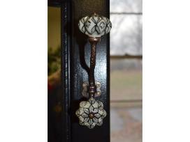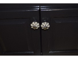 Beautifully refinished in black, this hall tree will look beautiful in your home. The hooks and knobs were handmade in the United Kingdom. There is a small storage area underneath to store extra items.