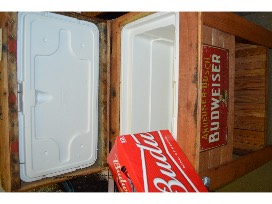Former alumnus and current faculty, Coach Aaron Portell has handcrafted this unique cooler. On the front of the cooler is a vintage Budweiser sign and a "Beer Thirty" bottle opener. With a spigot on the side to drain it, and a 12 pack of Budweiser on the inside, this item will be a hit at your next party.