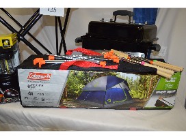 If you love camping and spending time in the great outdoors, you will love this package that the Dalton House has assembled. You can set up camp and enjoy the outdoors in this compact yet spacious Coleman Sundome 4 person tent. It comes with the WeatherTec system that will keep you dry with its patent welded floors and inverted seams. The snag-free, continuous pole sleeves mean you only have to feed the poles once for easy set up. This 9' x 7' one room tent with a 5' center height allows easy movement and the durable carry bag allows for easy transport. Two Coleman sleeping bags will keep you and your guest warm in temps as low as 20 degrees. The Weber Go-Anywhere Charcoal Grill allows you to cook on the go. This porcelain-enameled lid and bowl retain heat for superior grilling. The plated steel legs pivot to lock the lid in place for carrying. An Atomic Beam Lantern provides bright 360 degree LED lighting. Pass the time with your GoSports Giant 3.5" wooden playing dice set with scoreboard. We have included BBQ utensils, a walking stick for hiking, citronella candle, bug spray, paper products, and all the fixings to make jumbo s'mores!