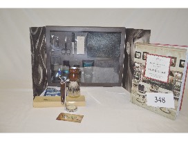 This is a superior handcrafted shaving set that includes a razor, shaving brush, chrome stand, The Gentleman's Guide to Grooming book and Body Prescriptions ultimate grooming collections. The brush is made from a high-quality mix of natural badger hair. This brush provides a softer feel on your face that is similar to the rare and much higher priced "High White Mountain" hair. It is densely packed and offers superior water retention which enables a great foaming action and a thick lather application to your face. These bristles have less of an inclination to bend, which is desirable due to its highly effective scrubbing action you can perform on your shaving soap, as well as your face.