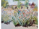 Beautiful framed original watercolor painting by local artist Barbara Kornfeld. "Long's Iris Garden"