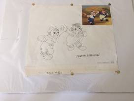 Original Drawing, 1 of 3 Prototypes for limited edition signed by Myron Waldman, artist (with color image affixed in upper right corner).