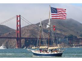 Watch the sun drop behind the Golden Gate Bridge aboard the Freda B., one of the Bay's most popular yachts.