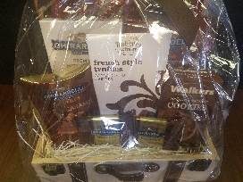 Ghiradelli wooden box includes cookies, hot chocolate, truffles and ghiradelli chocolate squares