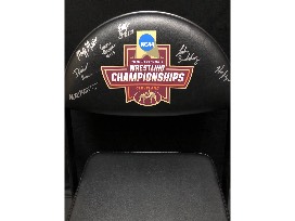 2018 NCAA Championship Wrestling Chair from SDSU Wrestling autographed by 2017-18 NCAA Qualifiers from SDSU, Seth Gross, David Kocer, Luke Zilverberg, Nate Rotert, Martin Mueller, Connor Brown, and Henry Pohlmeyer.