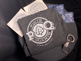 Includes T-shirt (Size: Medium), two $20 gift cards, bottle opener and car decals from Pints and Quarts.