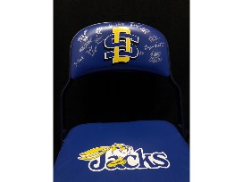 Authentic SDSU team chair autographed by the 2017-18 SDSU wrestling team. Donated by SDSU Athletics.