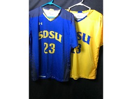 Personalized soccer jersey for the 2018 season. Option for the blue or yellow jersey and to add custom name and number. Donated by SDSU Soccer.