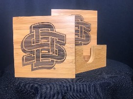 Laser engraved SD bamboo coaster set with holder. Donated by Randy and Jody Feucht with Creative Signs N More.