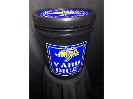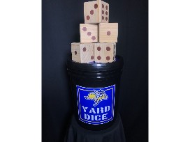 Yard Dice featuring Jackrabbit logos. Game is equipped with six (6) yard dice and a scoring sheet. Donated by Outlaw Graphics.