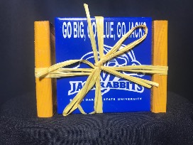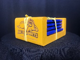 SDSU coaster set with holder. Donated by Bill Weber.