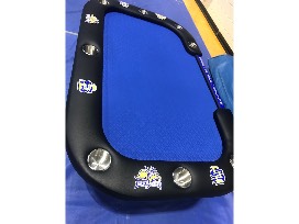 The Helmsley is a modern yet rustic gaming and dining table with Jackrabbit logos! The contemporary look of the Helmsley offers the thrill of a game surface with the elegance of a dining table in one piece of furniture. The Helmsley Gaming and Dining Table is configured with blue suited speed cloth, stainless steel cupholders, and dining top that lifts on and off. The Helmsley is finished in an English Oak and seats 8 for playing and 6 for dining. Gaming rectangle dimensions 70"L x 40" W x 30" T, 145 lbs. Rectangle Dining Dimensions 72"L x 46" W x 32" T, 205 lbs.