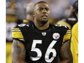 Football signed by former Michigan Wolverine (#56) and Pittsburgh Steeler (#56) LaMarr Woodley.