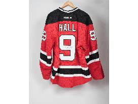 NHL's New Jersey Devils jersey autographed by (#9) left wing, Taylor Hall.