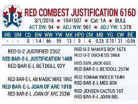 Red Combest Justification 616D is from the herd sire that has