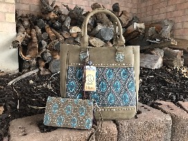 Beautiful Montana West matching handbag and wallet set featuring a teal and brown southwest design. Package also includes matching DC sunglasses. Ready for any occasion.