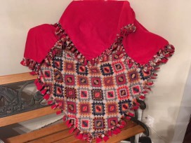 Red and Gray Aztec 72" x 48" double fleece tied fringe throw.