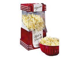 Enjoy fresh, hot, delicious popcorn anytime in this retro designed, diner-style, hot air popcorn popper. The convenient, tabletop-size electric popper uses hot air instead of oil, producing a deliciously healthy, low-fat snack in just minutes.