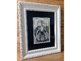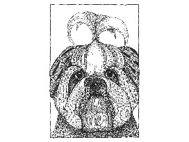 Framed pen and ink. Here, Kristin Moger's intricate pen and ink patterns come together to create an adorable little dog who is obviously doted on and most likely spoiled rotten. Her black and white images are sophisticated and work anywhere in your home.