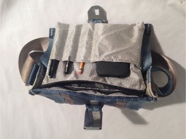 This purse is made from 100% salvaged seatbelts harvested in middle Tennessee. Durably stitched with industrial sewing machines, this purse is hand crafted to last. 2" strap is comfortable on the shoulder. Perfect for everyday use and versatile enough to take to the office or accompany you after hours. 10.5"x7"x3" with adjustable strap. 7"x7" interior pocket with zipper closure is made from durable and waterproof air bag material. Interior pocket features pen dividers and smaller pocket for phone, keys, or random purse things.