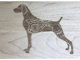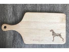 8x12x3/4 inch board with 4 inch handle of cherry wood. The inspiration for the design on this wooden on this piece is Janvi's dog Sky. Janvi is an advocate for Weimaraner rescue across the country and has been a generous donor to Art for Animals for several years.