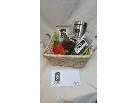 Coffee basket donated by Account Sense. Basket includes pumpkin, Irish Cream Coffee candle, Guatemalan coffee beans, chocolates, a Coco Moon coffee mug, and a $25 gift card for Coco Moon.