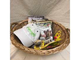 Igogs hat, 4 fishing DVDs, super-charged Impulse bloodworm bait, puppy minnow bait, bro bug jig, RZ jig, gypsi jig, and 2 packages of Impulse super-charged reactionary baits