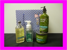 Breathe deeply and relax. Beautiful Bath and Body Works hand soap, body lotion, 3-wick stress candle, and body wash - all stress-relief eucalyptus scented - will take you to a happy place! Value $113.