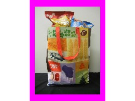 Reusable Trader Joe Bag filled with goodies! Includes Honey Nut O's, Melon Juice, Medium Roast Coffee, Marinara Sauce, Spaghetti, Movie Popcorn, Peanut Butter filled Pretzels, Sweet Potato Chips, Mango Salsa, Gummy Candy, Peanut Butter Cups, and Dark Chocolate Almonds. Valued at $45.