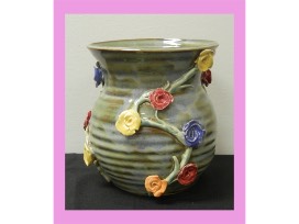 This adorable glazed 6" tall green vase adorned with colorful flowers will welcome spring all year long. Or get creative... it's oven, dishwasher and microwave safe! Valued at $65.
