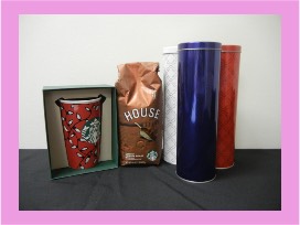 Put a smile on yuor face with this striking Starbucks red holiday lights mug, 3 tall tins of shortbread cookies, and 1 pound of Starbuck's House Blend coffee. Valued at $25