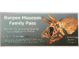 $20 gift card for Volcano Falls Adventure Park in Loves Park, IL. The park had Go-carts, miniature golf, batting cages, arcade, and laser tag and Burpee Museum of Natural History Family Pass. Free one time General Admission for 2 Adults and 4 Children.