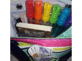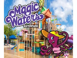 2 Magic Waters Waterpark Admissions valid for the 2018 season, Tall Organizing Tote & file, and Rainbow Bubble wands, 4 blue silicone hats, Baseball Bubble Gum Chew, Hand held game, red sunglasses, chap-stick, and a book.