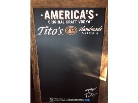 Tito's Vodka A-frame chalkboard an a bottle Tito's.