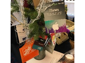 Cute little Christmas tree decorated to the hilt with gift cards! Get that holiday shopping done!