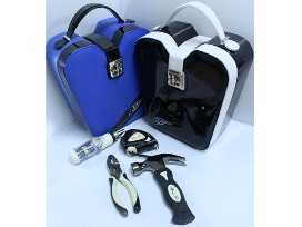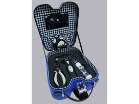 The upscale, designer set of household tools skillfully contoured to fit a woman's hand. Designed to reflect a chic and fashionable lifestyle, the unique design, and stylish carrying case can be displayed in any room of the house, readily available for multiple household projects.