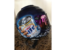 This is a one of a kind Miller Lite Simpson helmet from Rusty's personal collection. We are so grateful as this is one of the last racing helmets that Rusty has from his NASCAR racing career.