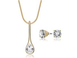 Necklace with Teardrop-cut crystal drop pendant, 12K gold plating snake chain with spring ring clasp